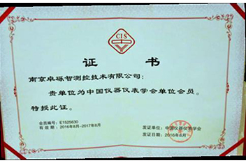 2016年獲批中國儀器儀表學會單位會員