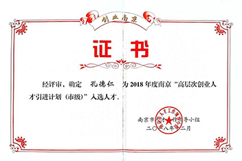 2018年法人獲得《高層次創業人才引進計劃》