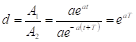 衰減震蕩過程曲線上相差一個周期T的兩個峰值A1與A2之比為衰減率,即: